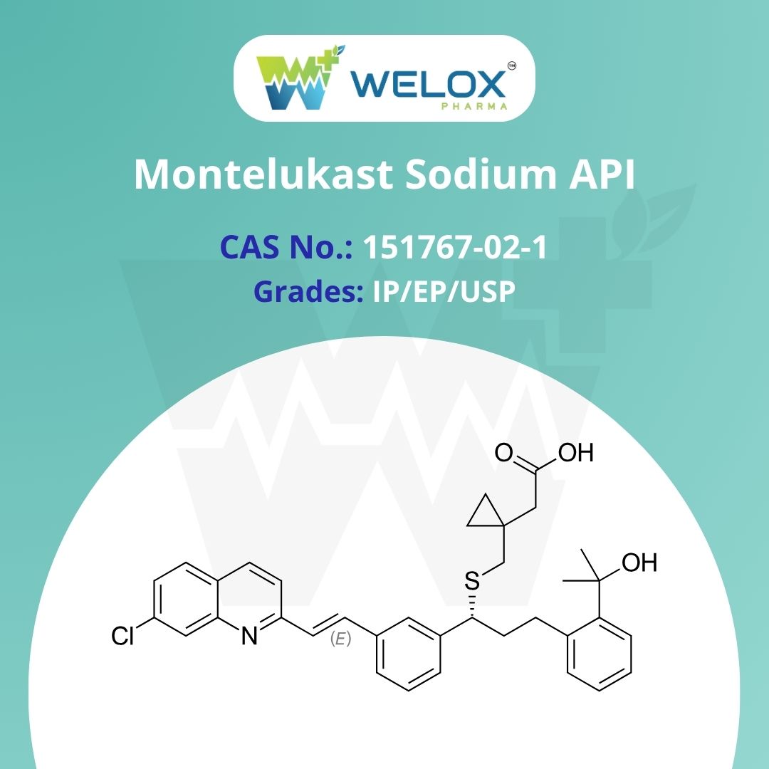 Montelukast Sodium is an active pharmaceutical ingredient (API) widely recognized for its efficacy in the treatment and management of asthma and allergic rhinitis. Montelukast Sodium acts as a selective and competitive leukotriene receptor antagonist, inhibiting the cysteinyl leukotriene (CysLT1) receptor responsible for airway inflammation, bronchoconstriction, and mucus secretion. Montelukast Sodium blocks leukotriene activity and improves breathing, reduces symptoms of asthma, and prevents exercise-induced bronchospasm.
