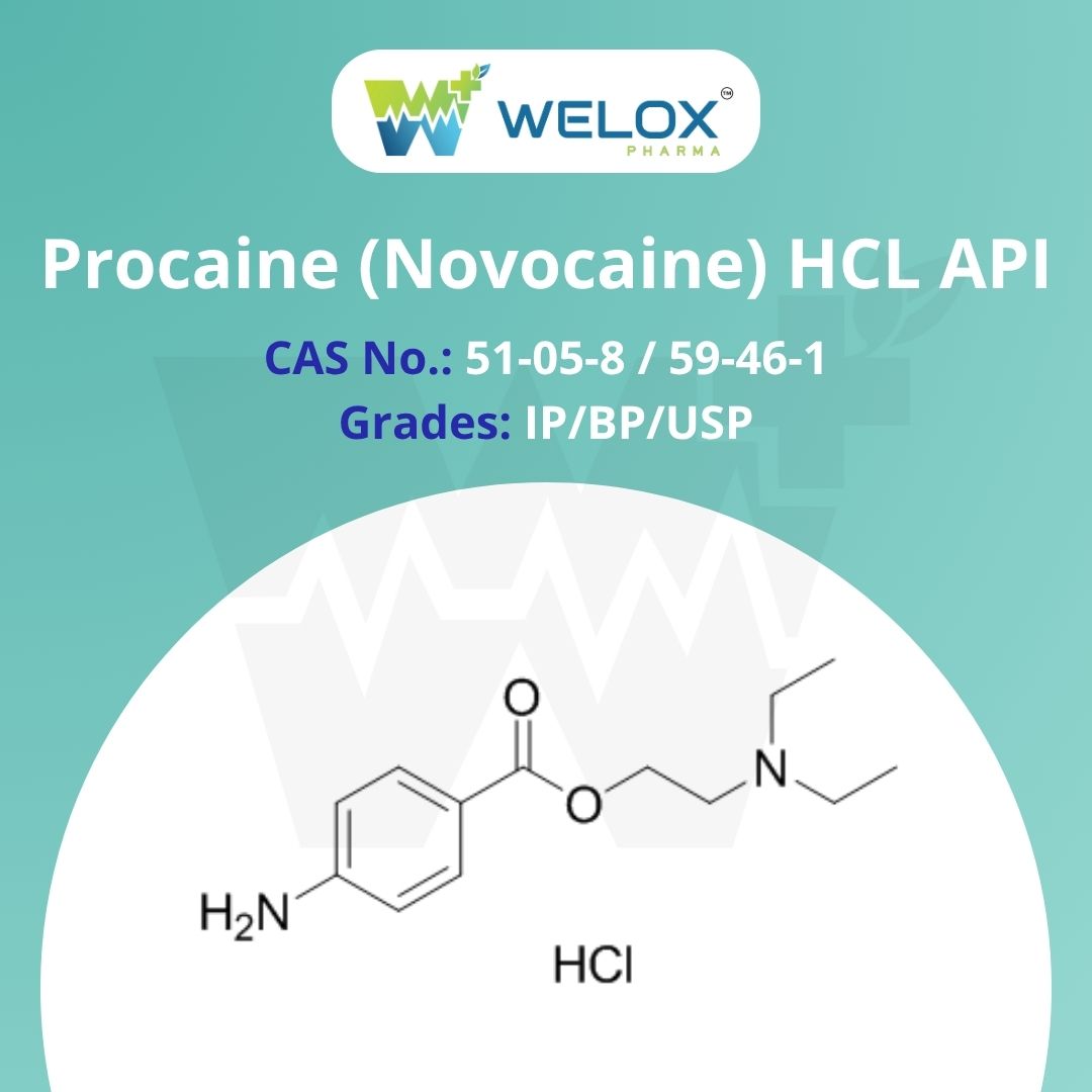 Welox Pharma Private Limited is the leading manufacturer of Procaine (Novocaine) HCL / Base API in IP/BP/USP grade and offers high-quality products with the highest levels of compliance and our API products are trusted by pharmaceutical companies in over 90 countries, reflecting our global footprint and reputation.