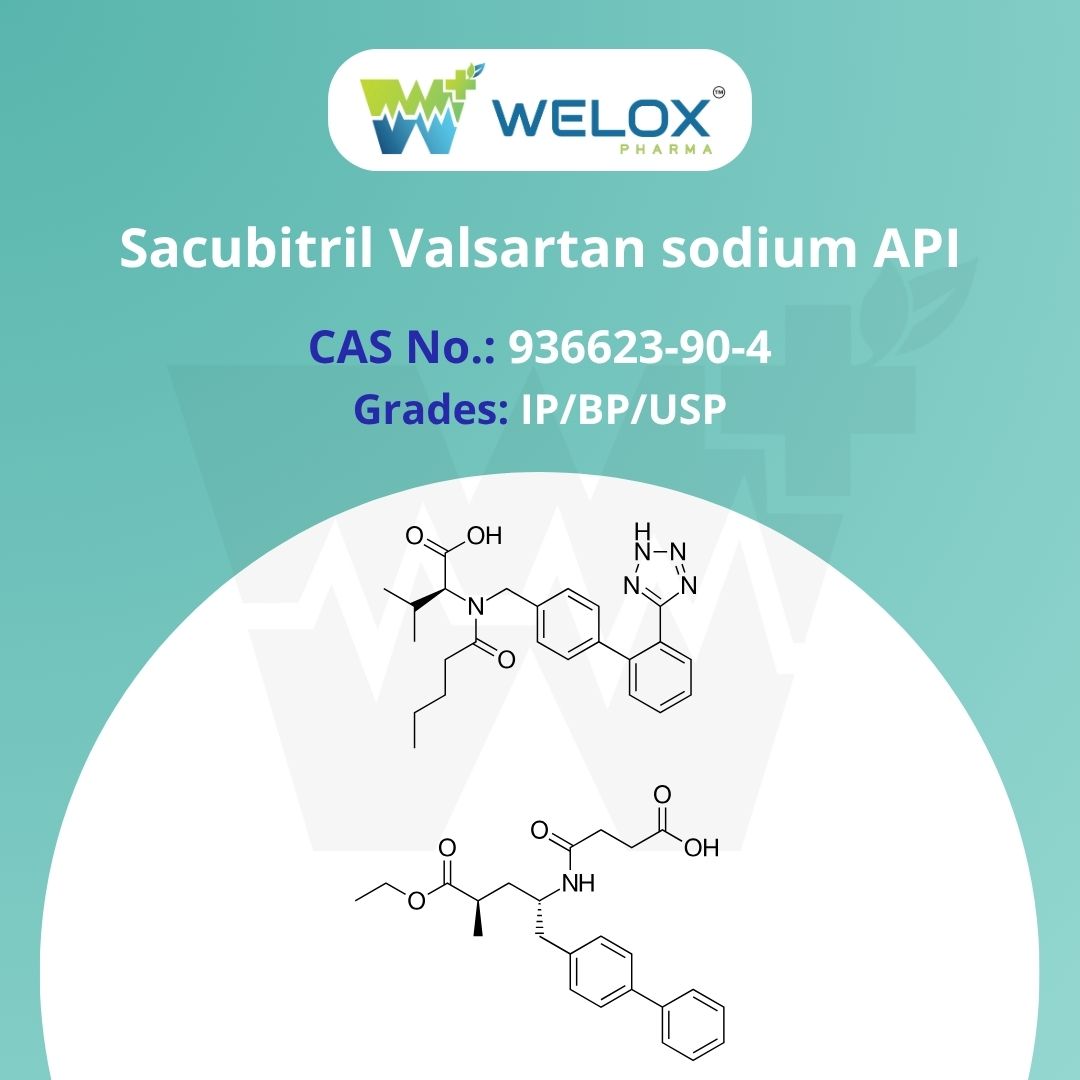 Sacubitril Valsartan Sodium is a combination API that treats chronic heart failure as well as hypertension. This API possess dual acting therapeutic innovation and includes Valsartan, known as angiotensin II receptor blocker [ARB] with Sacubitril, a neprilysin inhibitor creates formulation which is clinically known as ARNI [ angiotensin receptor-neprilysin inhibitor]. This combination of Valsartan and Sacubitril promotes vasodilation, enhanced cardiac output and natriuresis. Sacubitril Valsartan Sodium has strong efficacy in reducing heart failure and improves ejection fraction.
