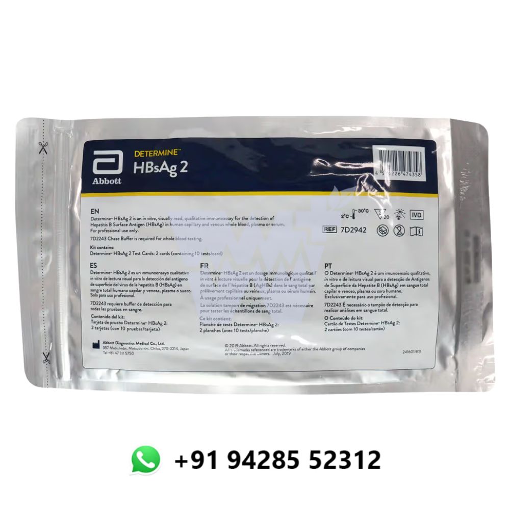 The Abbott Determine HBsAg 2 Rapid Card is an advanced and highly reliable diagnostic tool designed for the qualitative detection of Hepatitis B surface antigen (HBsAg) in human whole blood, serum, or plasma samples. This rapid test is designed to provide healthcare professionals with quick, accurate results for Hepatitis B Virus (HBV) screening, supporting timely interventions and effective patient management.