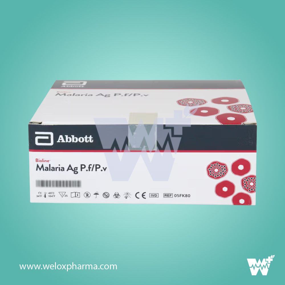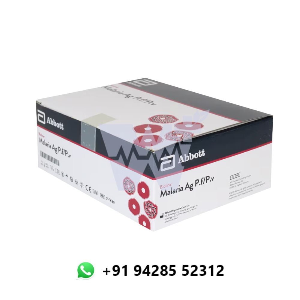 The Abbott Mal AG P.F/P.V (D) Malaria Rapid Card is a reliable, immunochromatographic test designed for the qualitative detection of Plasmodium falciparum and Plasmodium vivax antigens in human blood. Engineered for point-of-care use, this rapid diagnostic test provides accurate results within 15–20 minutes, enabling early detection and prompt treatment of malaria. Its ease of use and high sensitivity make it suitable for hospitals, clinics, and field settings.