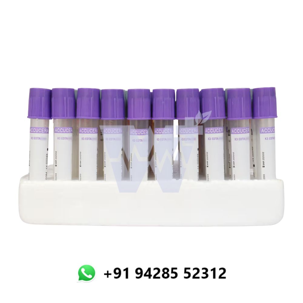 The Accucera K3 EDTA Non-Vacuum Blood Collection Tube is designed for precise manual blood collection, particularly suited for low-volume sampling and sensitive patient groups. It contains liquid K3 EDTA, a strong anticoagulant that chelates calcium ions to prevent blood clotting while preserving blood cell morphology. This makes it ideal for hematological tests such as complete blood count (CBC) and ESR. Built from high-quality, medical-grade materials, the tube ensures safe handling, leak resistance, and consistent diagnostic accuracy.