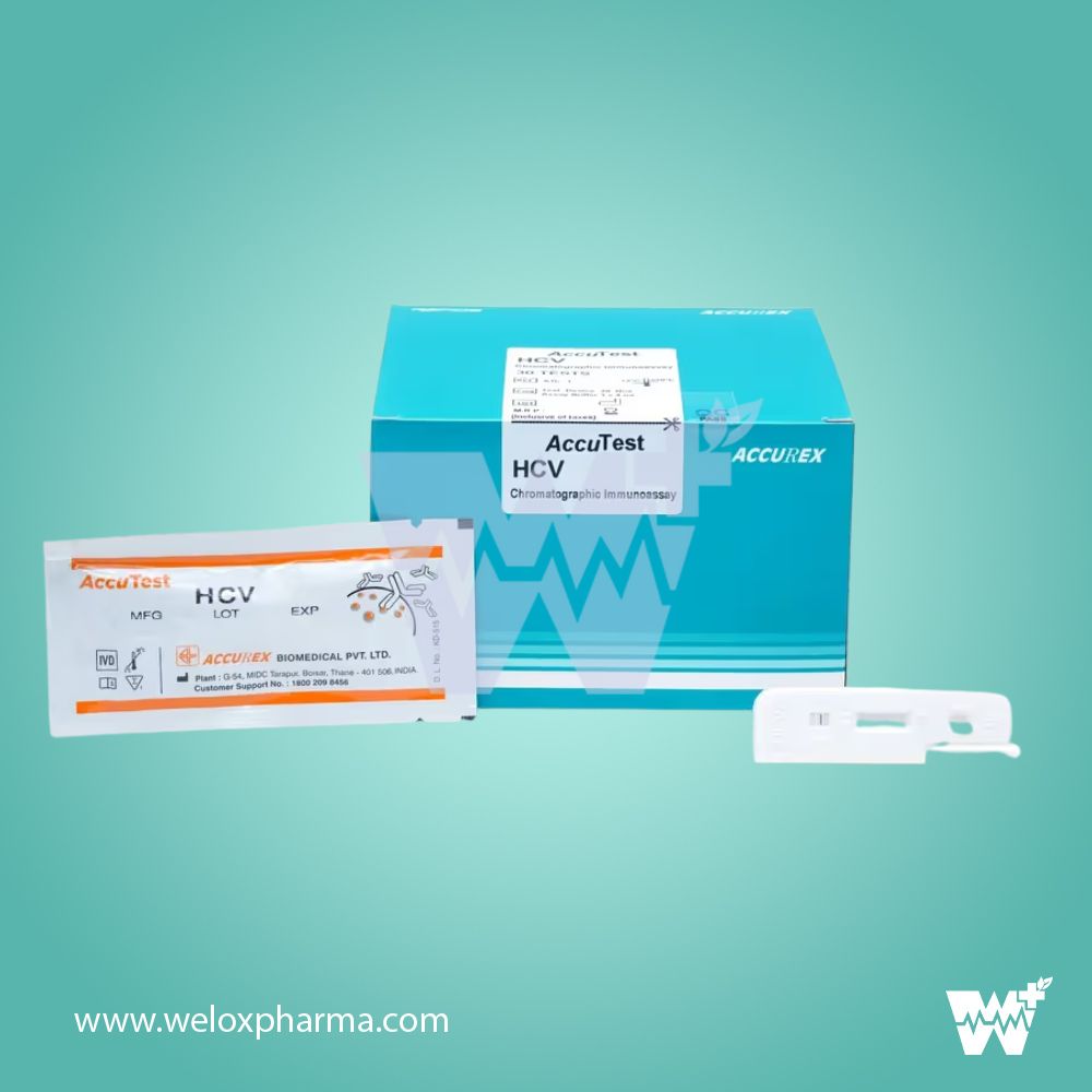 The Accurex Accutest HCV Rapid Card is a one-step, immunochromatographic assay for the qualitative detection of Hepatitis C Virus (HCV) antibodies in human serum, plasma, or whole blood. Designed for quick and reliable screening, this rapid test delivers results within 15 minutes, making it ideal for use in clinical laboratories, diagnostic centers, and field testing. With high sensitivity and specificity, it ensures accurate identification of HCV exposure, aiding in early diagnosis and intervention.