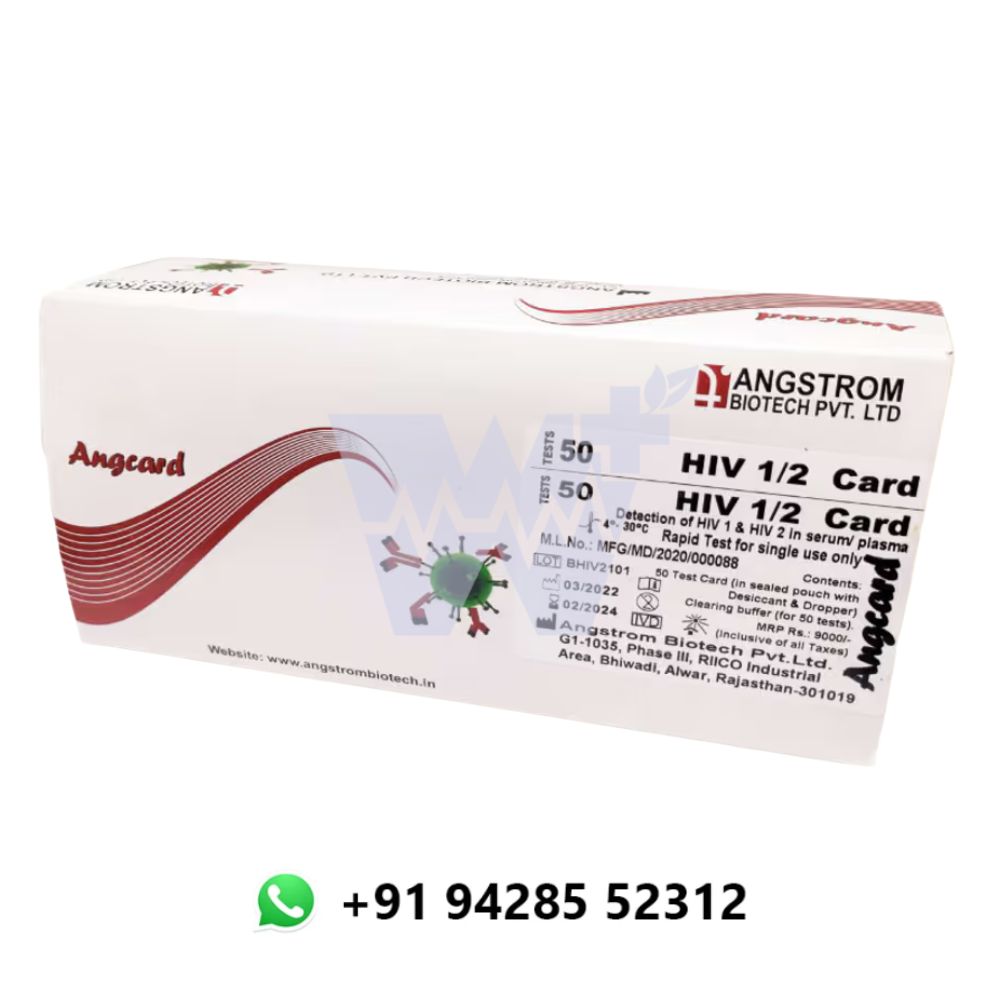 The Angstrom Angcard HIV 1/2 Rapid Card is a qualitative, immunochromatographic assay designed for the detection of antibodies to HIV-1 and HIV-2 in human serum, plasma, or whole blood. This rapid test is ideal for screening in hospitals, clinics, diagnostic labs, and community health programs, enabling timely identification of HIV infection and appropriate clinical follow-up.