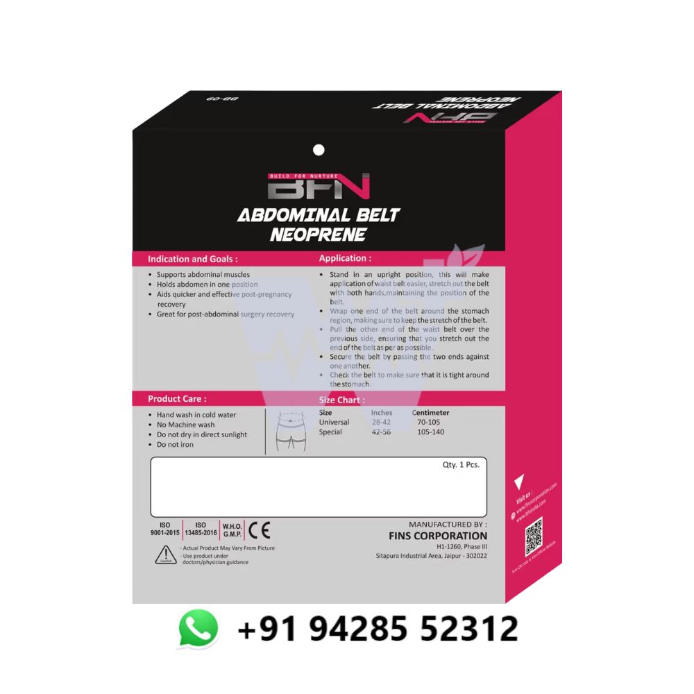 The BFN Build For Nurture Neoprene Abdominal Belt is designed to provide effective compression and support to the abdominal and lower back areas, making it ideal for individuals recovering from surgery, post-pregnancy, or looking to improve core stability during physical activities. Crafted from high-quality neoprene, the belt offers superior heat retention, promoting increased blood circulation and reducing muscle strain. Its adjustable design ensures a personalized, secure fit, while the breathable fabric ensures comfort during extended wear. The BFN Neoprene Abdominal Belt helps enhance posture, support abdominal muscles, and accelerate recovery.