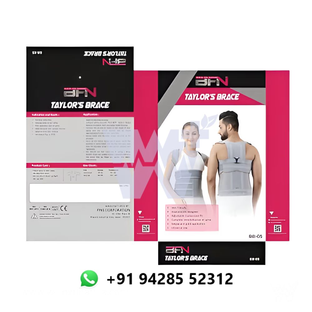 The BFN Build For Nurture Taylor Brace is designed to provide essential support and stabilization to the thoracic and lumbar spine, helping to reduce pain and promote healing during recovery from spinal injuries, fractures, or surgeries. With its ergonomic design, the brace ensures proper spinal alignment while offering firm support to the lower back and thoracic region. Made from lightweight, breathable material, it provides comfort during long hours of wear without causing discomfort or heat buildup. The adjustable straps allow for a customizable fit, ensuring secure positioning and effective compression for enhanced support during rehabilitation or daily activities.
