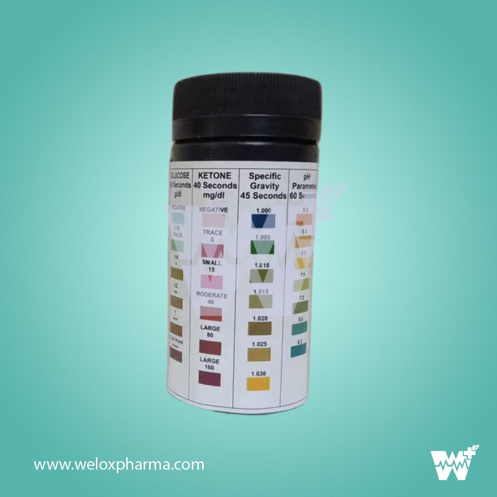 • 5-in-1 Analysis: Simultaneously detects glucose, protein, ketones, pH, and specific gravity.