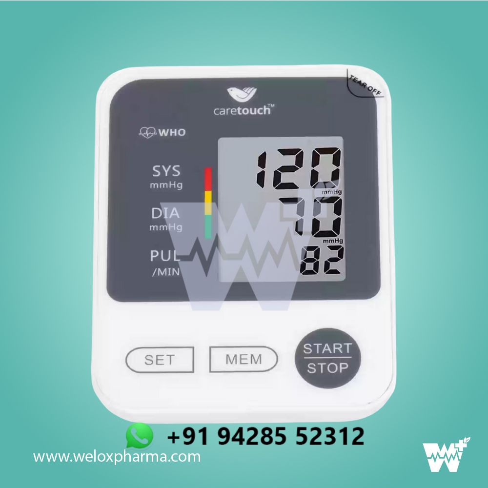 The Caretouch Blood Pressure Monitor offers a reliable and easy-to-use solution for monitoring blood pressure at home. Equipped with advanced oscillometric technology, it provides accurate systolic, diastolic, and pulse rate measurements with just one button press. The large white LCD display ensures clear, easy-to-read results, and the comfortable cuff fits most arm sizes securely for precise readings. The device also features memory storage to track multiple readings and monitor blood pressure trends over time. Additionally, it includes an irregular heartbeat detection function, alerting users to abnormal heart rhythms during measurement.