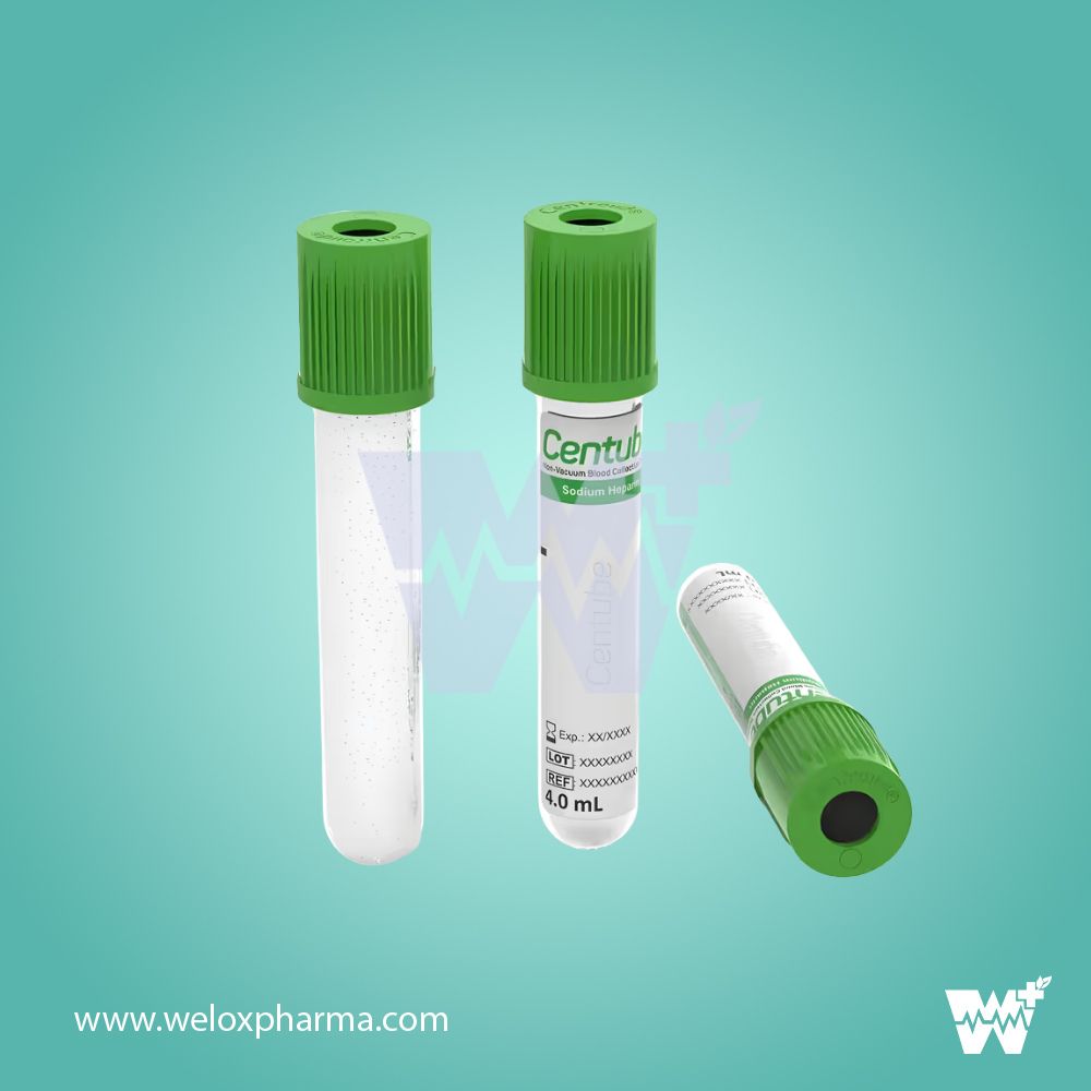 The Centube Sodium Heparin Non-Vacuum Blood Collection Tube is designed for manual blood collection, ideal in settings requiring controlled sampling. Pre-loaded with Sodium Heparin, it prevents coagulation by inhibiting thrombin and clotting factors, ensuring accurate plasma analysis for clinical chemistry and biochemistry tests.