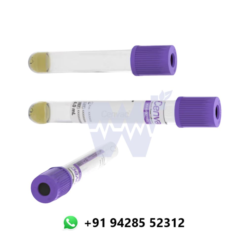 The Cenvac K3 EDTA + Gel Vacuum Blood Collection Tube is engineered for advanced diagnostic applications requiring plasma separation with anticoagulation. It contains liquid K3 EDTA to prevent clot formation by chelating calcium, while the integrated separation gel forms a reliable barrier between plasma and cellular components during centrifugation. This design ensures high-quality plasma samples suitable for molecular biology, immunoassays, and viral load testing. The vacuum-sealed tube ensures precise volume collection and consistent results.