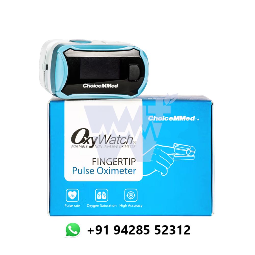 The ChoiceMMed Oxywatch Fingertip Pulse Oximeter offers precise and instant measurements of blood oxygen saturation (SpO2) and pulse rate, essential for monitoring cardiovascular and respiratory health. Featuring a large, easy-to-read digital display, it allows for quick and accurate result interpretation. Compact and lightweight, it is perfect for home use, fitness tracking, and managing chronic health conditions. The device includes an automatic power-off feature to conserve battery life and a carrying case for added convenience and portability, ensuring safe and reliable health monitoring on the go.