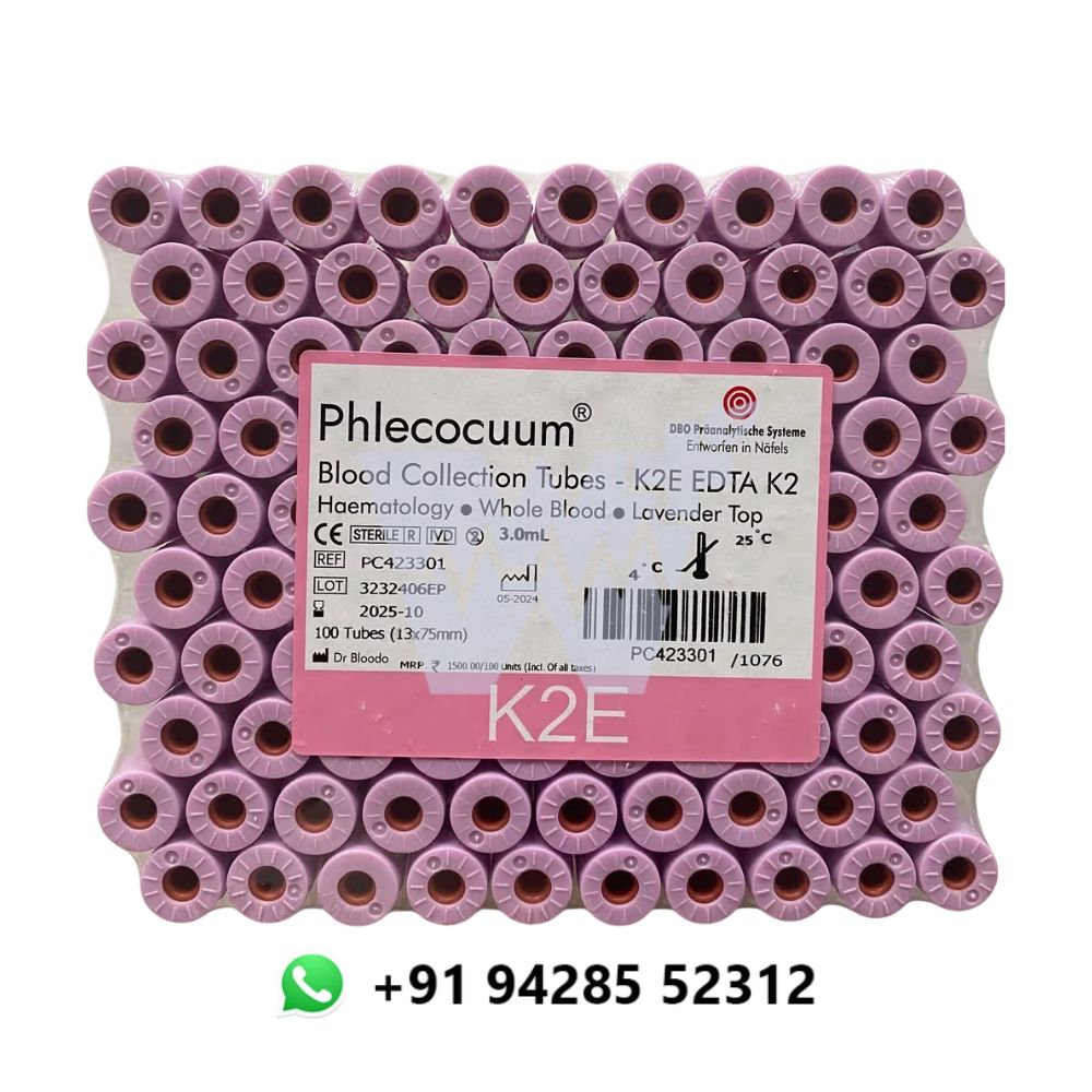 The DBO Phlecocuum K2 EDTA Blood Collection Tube is a high-performance vacuum tube designed for precise hematological testing. Pre-filled with K2 EDTA, it acts as a powerful anticoagulant by binding calcium ions, effectively preventing clot formation while preserving cellular morphology. Its advanced vacuum system ensures consistent blood draw volumes, optimizing accuracy and workflow efficiency in laboratory diagnostics.