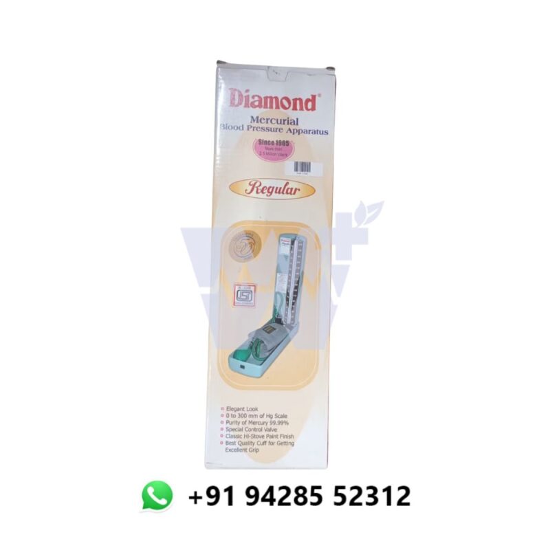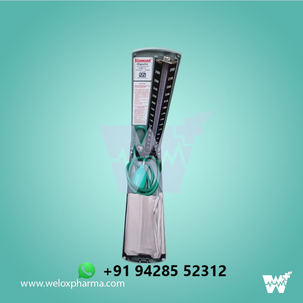 The Diamond Mercurial Blood Pressure Monitor offers precision and reliability in blood pressure measurement, utilizing the classic mercurial column method for highly accurate systolic and diastolic readings. Ideal for professional medical use, this device is known for its consistency and is widely trusted in clinical settings. The large, easy-to-read mercury column ensures clear visibility of readings, while the sturdy construction ensures long-term durability and reliability. With an adjustable cuff that fits a range of arm sizes, this monitor provides a secure and comfortable fit, allowing for accurate and consistent measurements. The Diamond Mercurial BP Monitor combines traditional accuracy with durable design for comprehensive blood pressure monitoring.