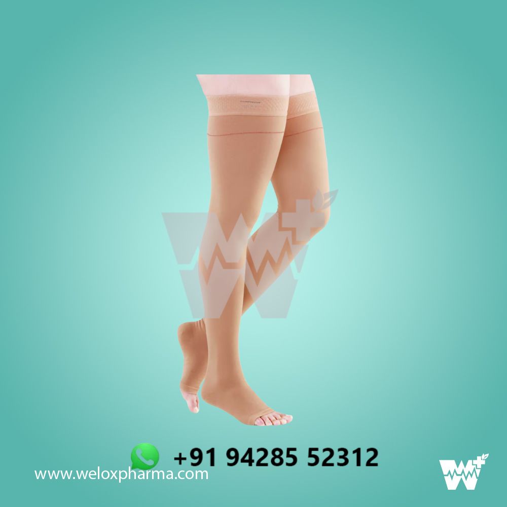 The Dyna Comprezon Cotton Varicose Vein Stockings Class 1 AG Up to Groin are designed to provide mild graduated compression, ideal for individuals experiencing early-stage varicose veins, leg fatigue, or mild swelling. These stockings offer gentle compression, helping to improve blood circulation, reduce swelling, and alleviate discomfort in the legs. The stockings extend from the ankle to the groin, providing full-leg support. Made from a soft, cotton-blend fabric, they ensure breathability and comfort, making them suitable for all-day wear. The Class 1 compression level is perfect for managing mild venous insufficiency and preventing the progression of varicose veins.