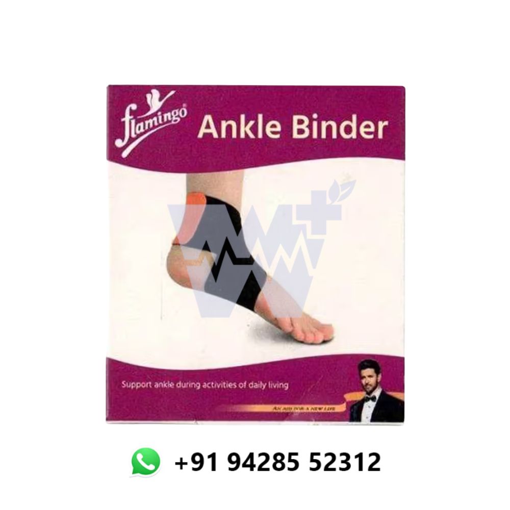 The Flamingo Ankle Binder is a high-quality support designed to provide compression and stabilization to the ankle joint, making it ideal for sprains, strains, and post-injury recovery. Its ergonomic design ensures a snug fit, offering targeted support to reduce swelling and provide pain relief. Made from breathable, lightweight materials, the binder maintains comfort during extended use and minimizes the risk of skin irritation. The adjustable straps allow for a customizable fit, providing controlled compression to enhance recovery while maintaining mobility for daily activities.