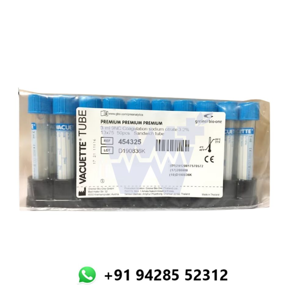 The Greiner Vacuette 9NC Coagulation Tube is a premium-quality blood collection solution, designed for precise coagulation testing. Pre-filled with 3.2% sodium citrate and featuring a 3ml capacity, it maintains the critical 9:1 blood-to-additive ratio for reliable PT, APTT, and other clotting assays. The innovative blue cap with black ring “sandwich” design ensures easy identification, while the high-quality vacuum seal guarantees consistent, sterile blood collection. Ideal for use in high-precision laboratory environments.