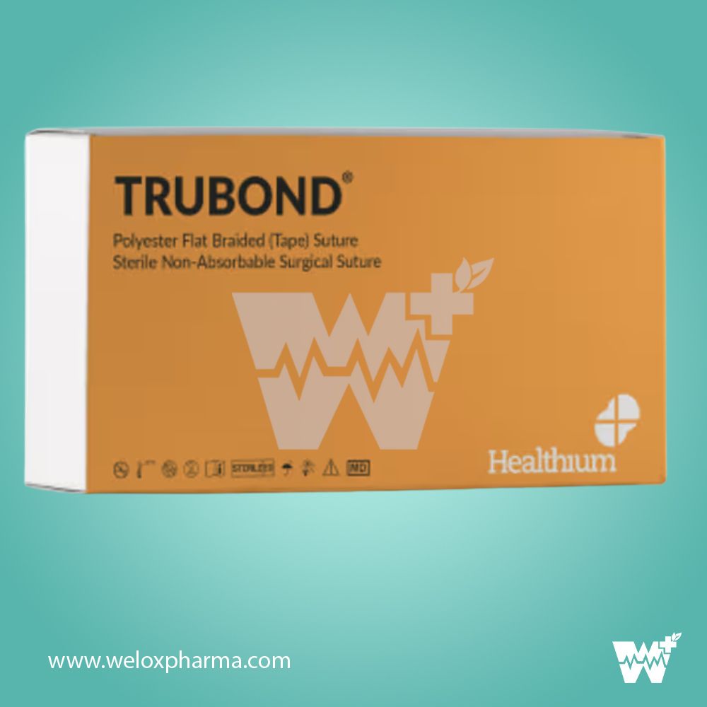 Healthium Trubond Suture 0‑0 is a sterile, non-absorbable braided polyester surgical suture coated with silicone to optimize handling and knot security. Designed for soft tissue approximation and long-term wound support, it provides high tensile strength and smooth passage while minimizing tissue reactivity. Trubond maintains its mechanical integrity indefinitely, as it is not degraded by tissue enzymes, and is gradually encapsulated by fibrous connective tissue [[0],[1]]. This 0‑0 (USP 0) size is ideal for general, cardiovascular, orthopedic, and prosthetic implant surgeries, including valve repair or replacement, where robust and durable tissue support is essential.
