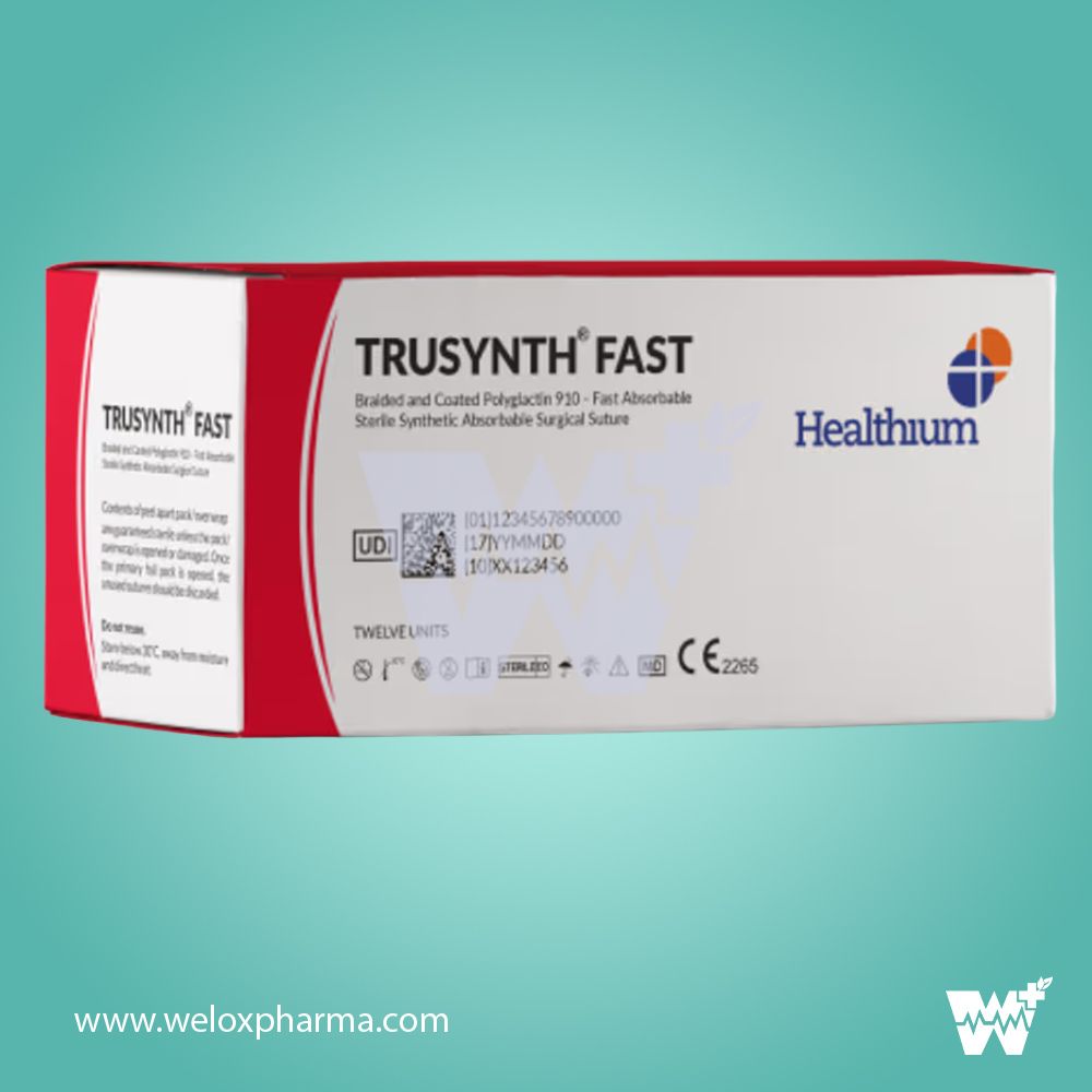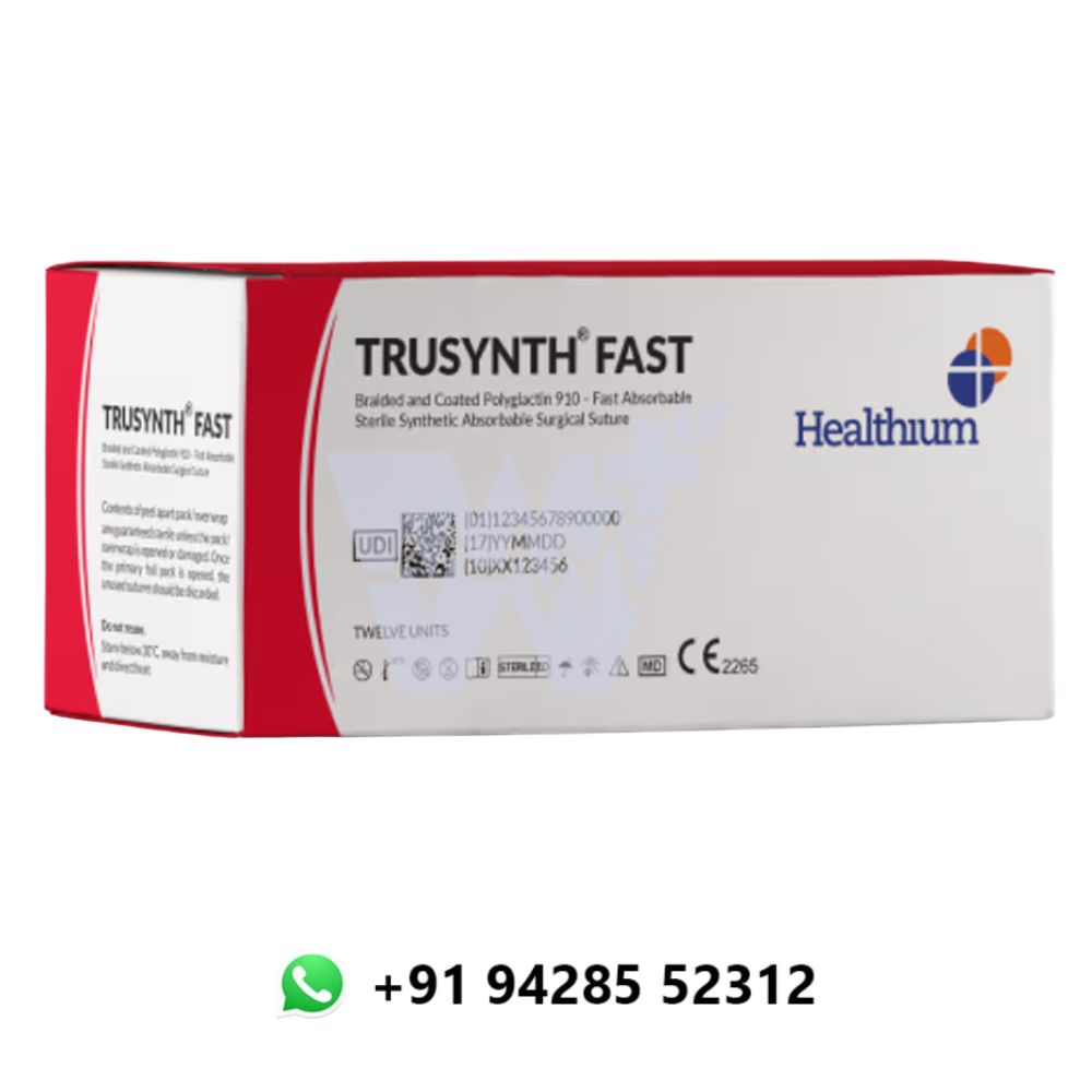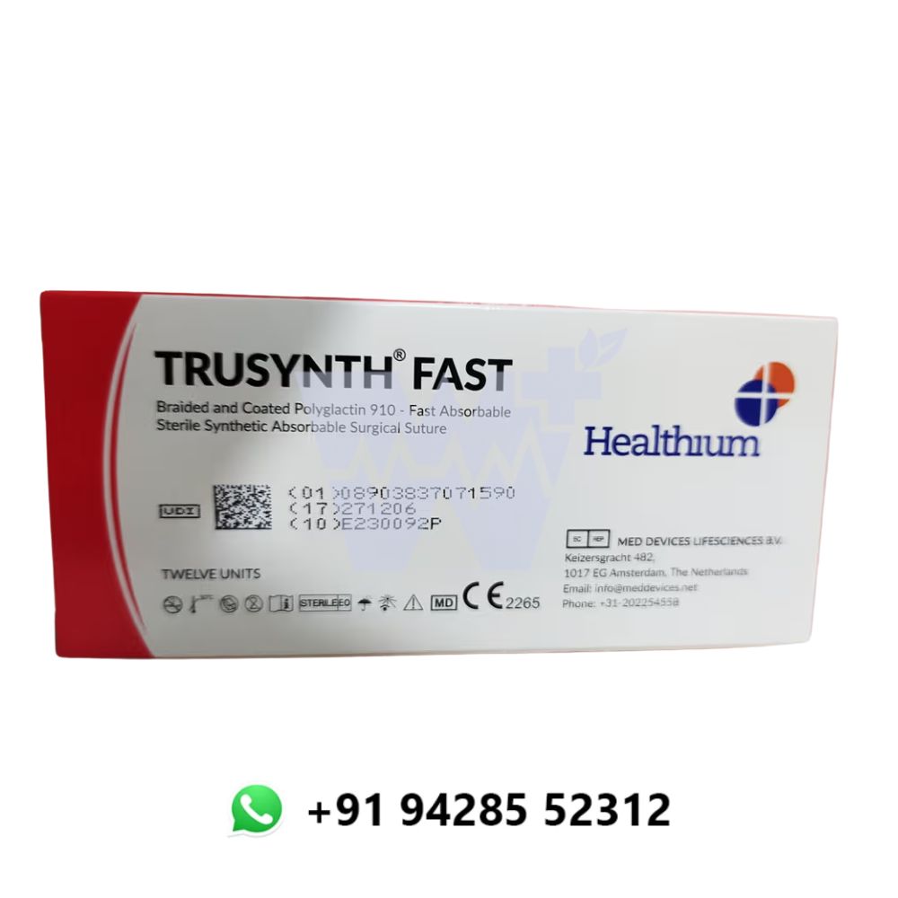Healthium Trusynth Suture 1-0 is a sterile, braided, synthetic absorbable suture composed of Polyglactin 910, designed for reliable soft tissue approximation and ligation. It delivers high tensile strength during the critical healing period and maintains excellent knot security and handling. Trusynth ensures minimal tissue reactivity and offers predictable absorption through hydrolysis, completing absorption within 60–70 days. It is widely used across various surgical specialties for dependable intraoperative performance.