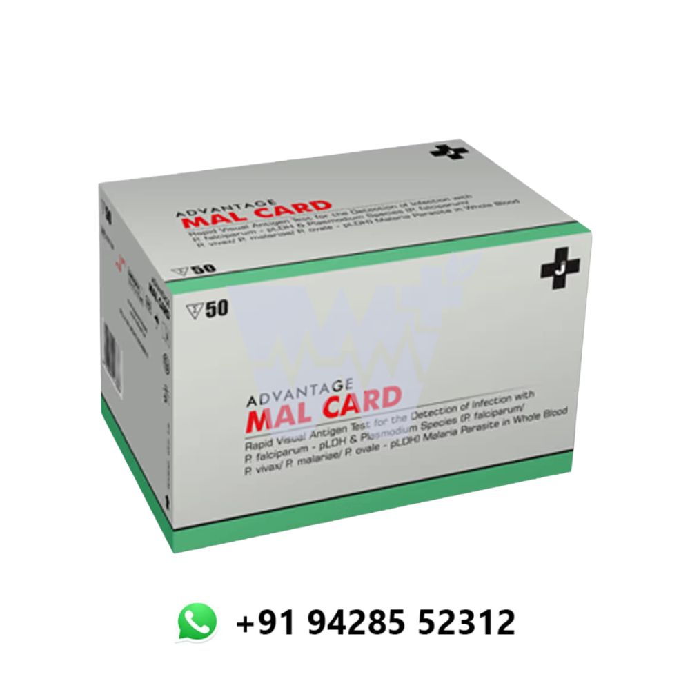 The J. Mitra Advantage Mal Card Test Kit is a rapid, one-step diagnostic tool for the qualitative detection of Plasmodium falciparum and Plasmodium vivax antigens in human blood. Designed for quick malaria screening at the point of care, this card-based immunoassay delivers reliable results within 20 minutes without the need for specialized equipment. Ideal for clinical, laboratory, and field use, it aids in timely diagnosis and early treatment of malaria infections.