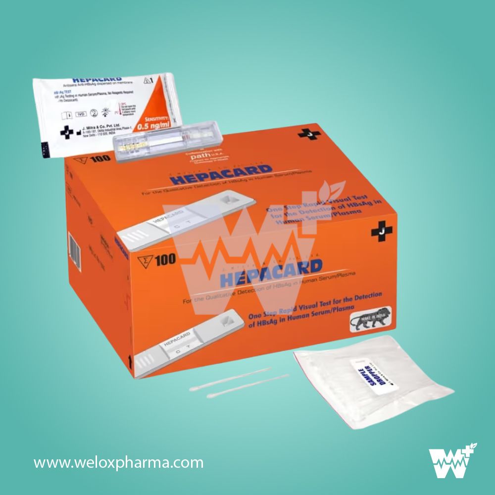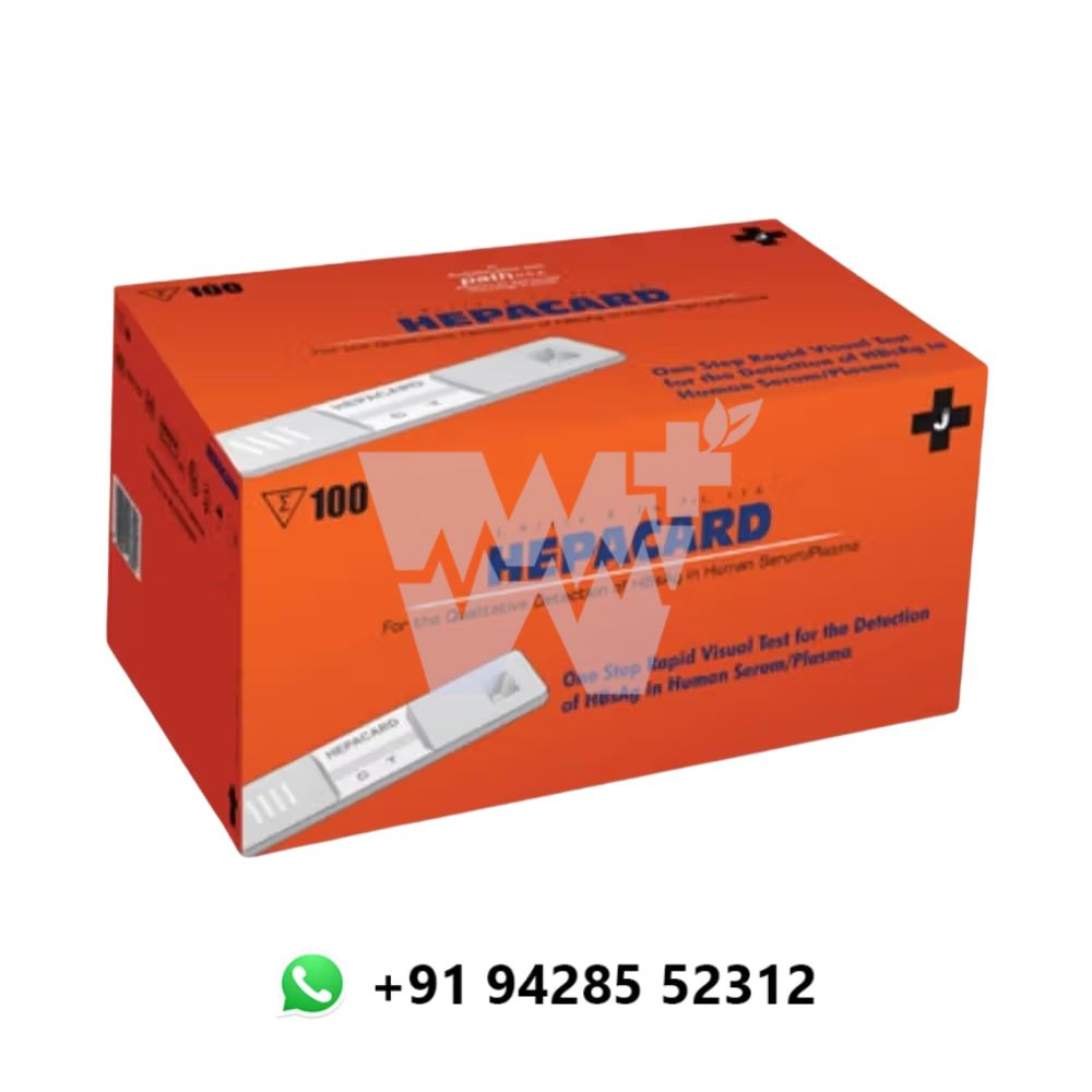 The J. Mitra Hepacard HBsAg Rapid Test is a fast and reliable diagnostic tool for the qualitative detection of Hepatitis B surface antigen (HBsAg) in human whole blood, serum, or plasma samples. Designed for ease of use and rapid results, this test enables healthcare professionals to screen for Hepatitis B Virus (HBV) infections efficiently, ensuring timely diagnosis and effective patient management.