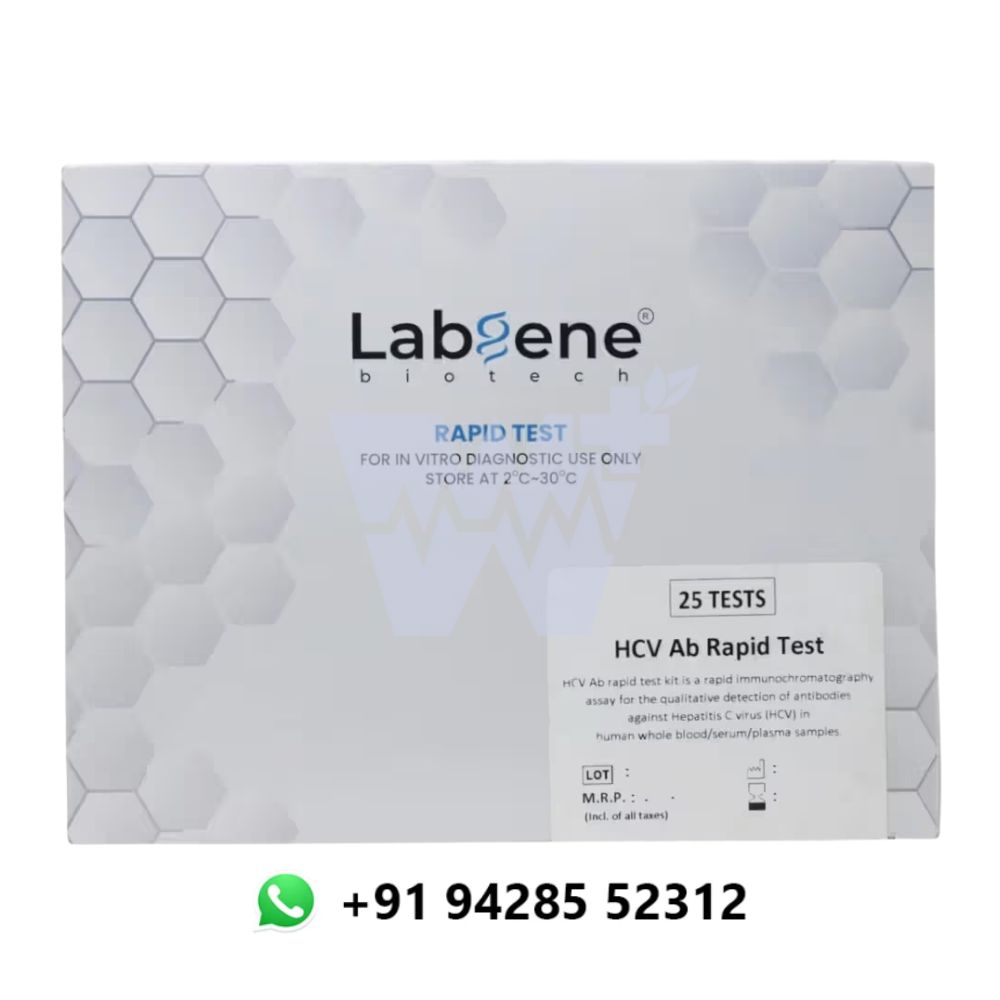 The Labgene HCV Ab Rapid Card is a qualitative immunochromatographic assay designed for the rapid detection of antibodies to Hepatitis C Virus (HCV) in human serum, plasma, or whole blood. This easy-to-use, point-of-care test provides reliable results within 10–15 minutes, facilitating early diagnosis and screening of HCV infection. Its high sensitivity and specificity make it suitable for clinical settings, blood banks, and epidemiological surveys.