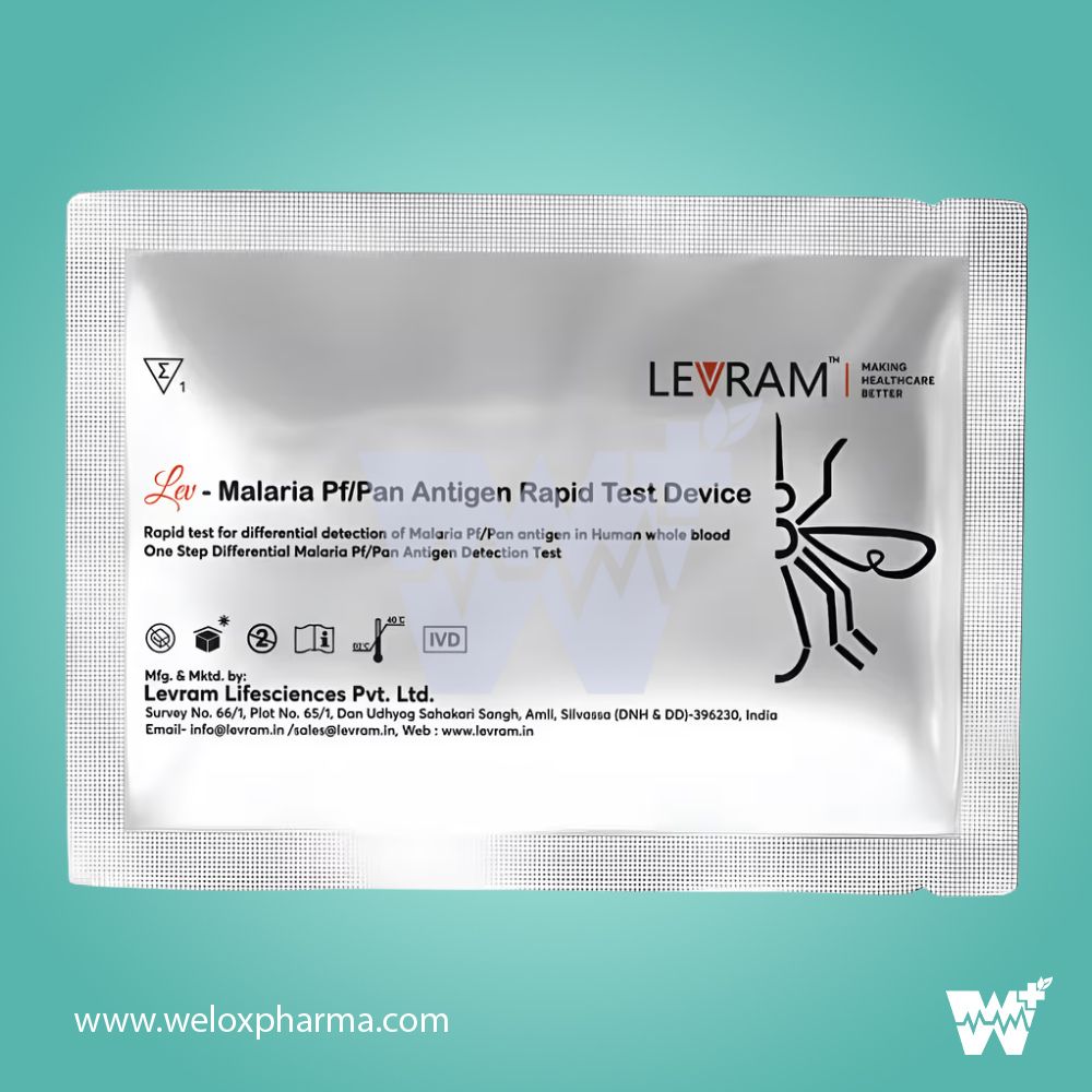 The Levram Malaria Pf/Pan Antigen Rapid Card is a high-accuracy, lateral flow immunoassay designed for the qualitative detection of Plasmodium falciparum (Pf) and pan-malarial (Pan) antigens in human whole blood. Ideal for use in both clinical and field settings, this rapid test enables early diagnosis of P. falciparum and other Plasmodium species, facilitating timely treatment and better patient outcomes. Each kit contains 25 ready-to-use test cards.