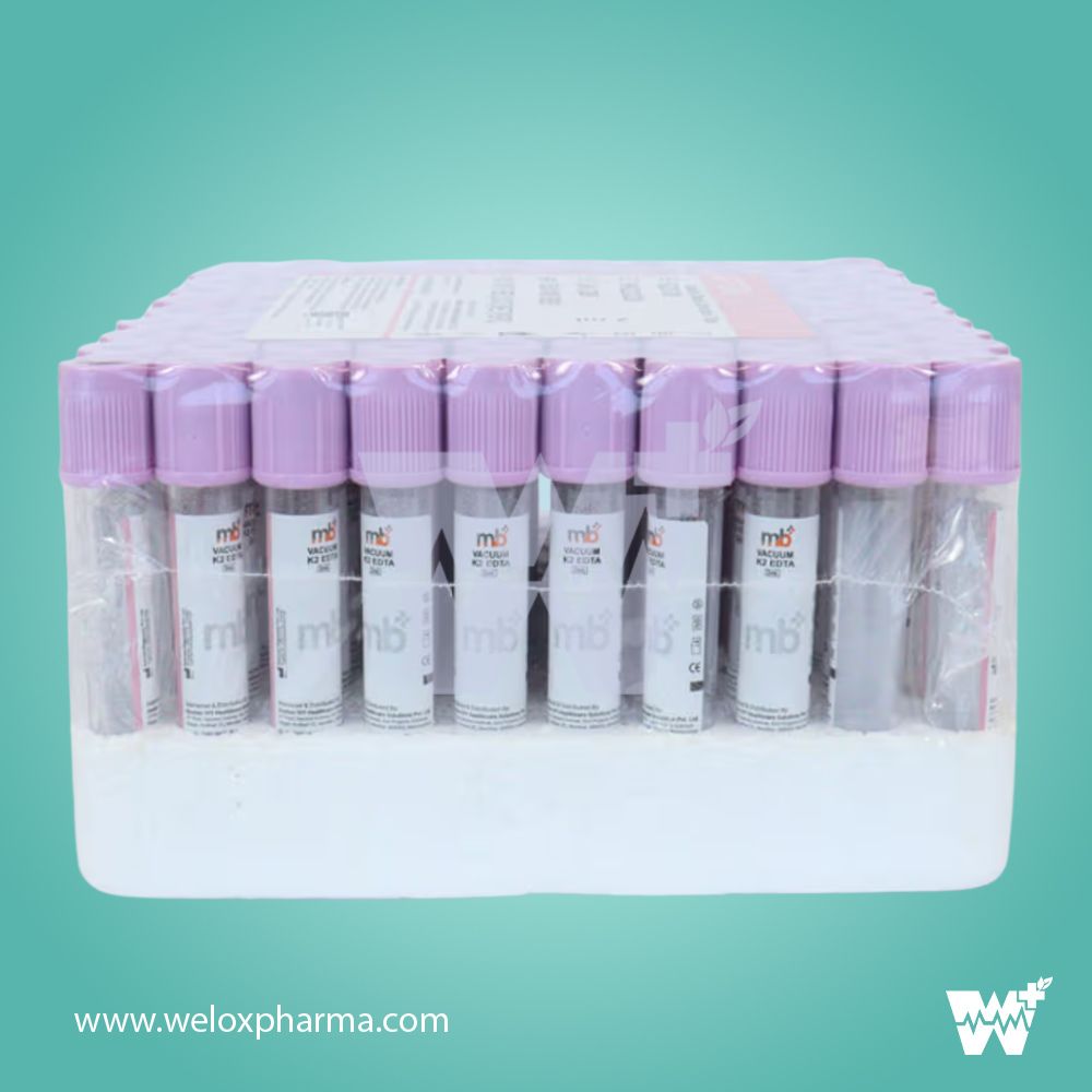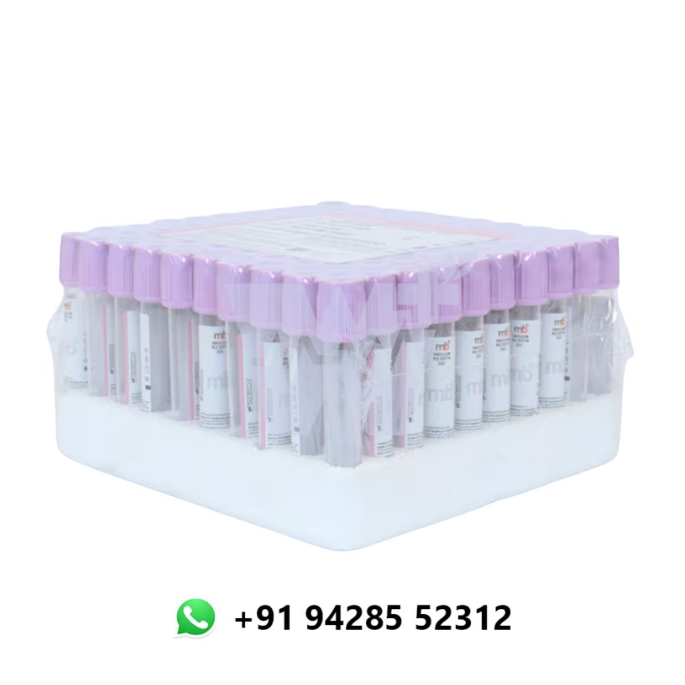 The mb+ K2 EDTA Vacuum Blood Collection Tube is designed for precision in hematological diagnostics. Pre-filled with dry K2 EDTA, it acts as a reliable anticoagulant by chelating calcium ions, effectively preventing clotting and preserving blood cell morphology. The vacuum-sealed design ensures consistent sample volume for accurate test results. Ideal for use in clinical laboratories, this tube supports a wide range of tests including complete blood count (CBC) and ESR, while its high-quality construction ensures safety and compatibility with automated analyzers.