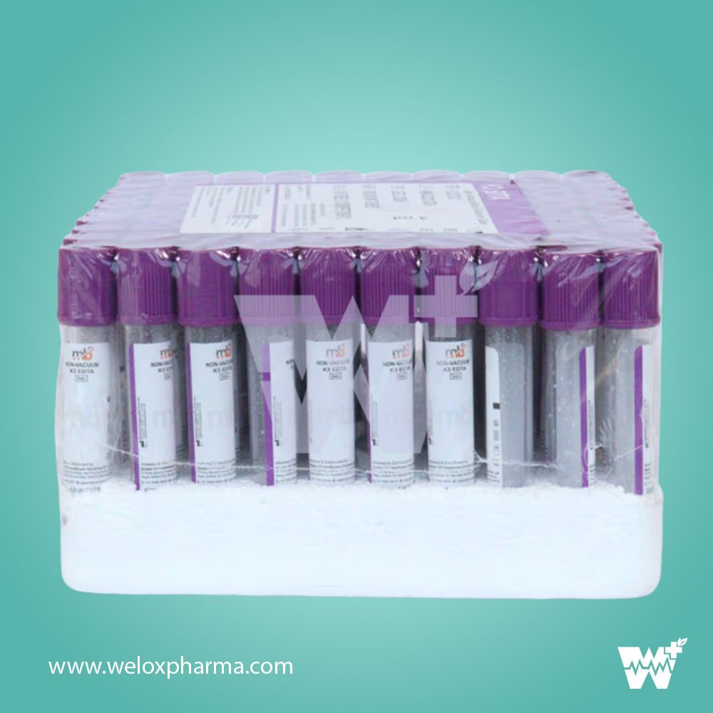 The mb+ K3 EDTA Non-Vacuum Blood Collection Tube is engineered for manual blood collection where precision and gentle handling are essential. Pre-loaded with liquid K3 EDTA, it acts as an effective anticoagulant by chelating calcium ions, thus preventing clot formation and preserving blood cell morphology. This makes the tube ideal for hematological analyses such as complete blood count (CBC) and ESR. The non-vacuum format supports controlled sampling, especially useful in pediatric, geriatric, or low-volume applications.