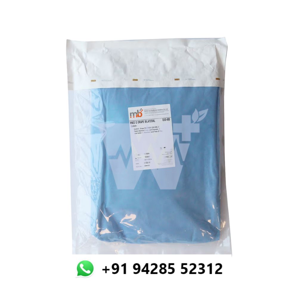 The MB+ Knee O Drape Bilateral is a specialized sterile drape designed for bilateral knee surgeries. Offering comprehensive coverage for both knees, this drape ensures a sterile field, enhancing the safety and efficiency of procedures such as bilateral knee arthroplasty or other complex knee surgeries.