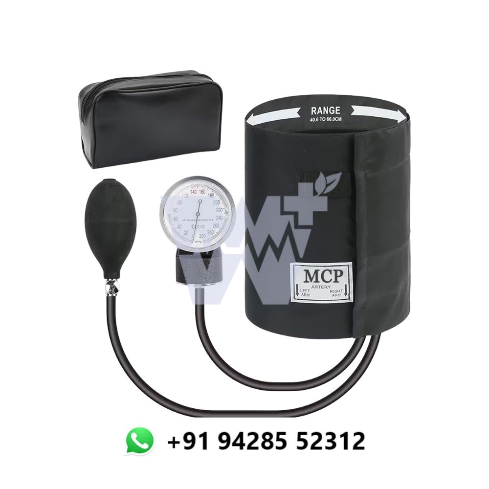 The MCP Aneroid Sphygmomanometer is a reliable, manual blood pressure monitor designed for accurate and efficient measurement of systolic and diastolic blood pressure. Its aneroid gauge offers precise readings, while the durable, latex-free cuff ensures a secure and comfortable fit for most adult arm sizes. Compact and easy to handle, this blood pressure monitor is ideal for both clinical professionals and home users seeking dependable performance. Built for frequent use, it provides consistent results and is a trusted tool for routine blood pressure monitoring.