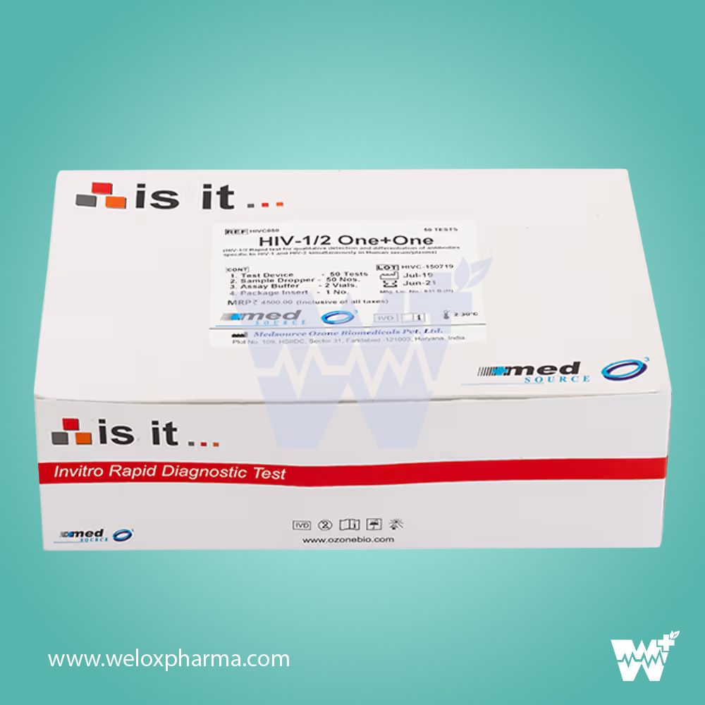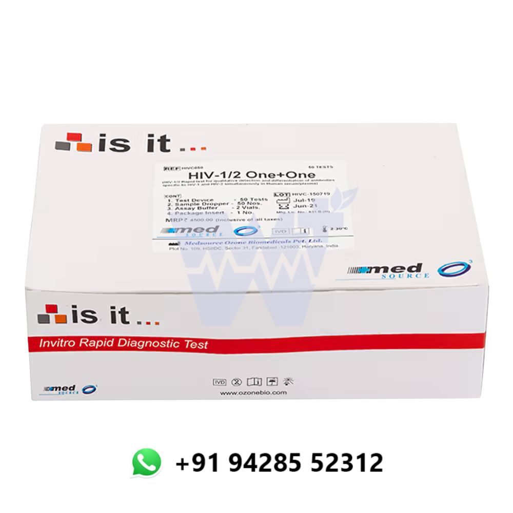 The Med Source Is It HIV 1/2 Test Device One+ One is a rapid, qualitative immunochromatographic assay designed for the simultaneous detection and differentiation of antibodies to HIV-1 and HIV-2 in human serum, plasma, or whole blood samples. This test offers a reliable and efficient solution for early HIV detection, crucial for timely intervention and care.