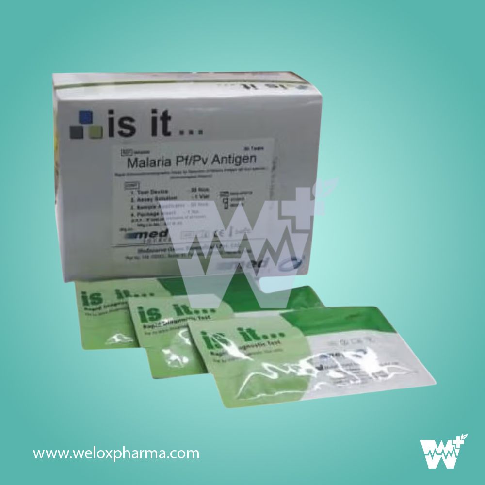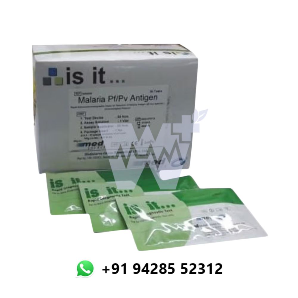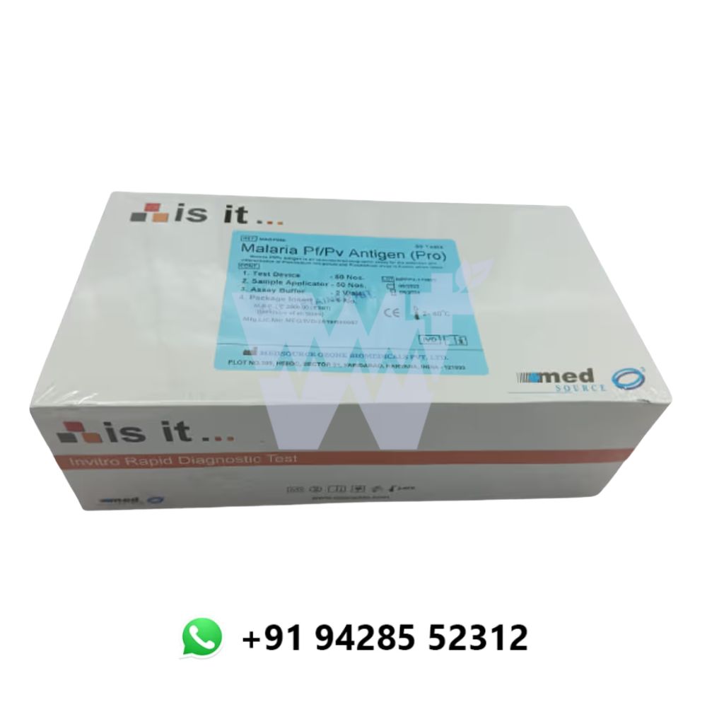The Med Source Malaria Pf/Pv Antigen Pro is a rapid, immunochromatographic diagnostic test for the qualitative detection and differentiation of Plasmodium falciparum (Pf) and Plasmodium vivax (Pv) antigens in human whole blood. Designed for both clinical and field use, this test delivers accurate and timely malaria diagnosis, aiding in prompt and species-specific treatment. Each kit contains 25 individually sealed test devices, making it suitable for high-throughput screening.