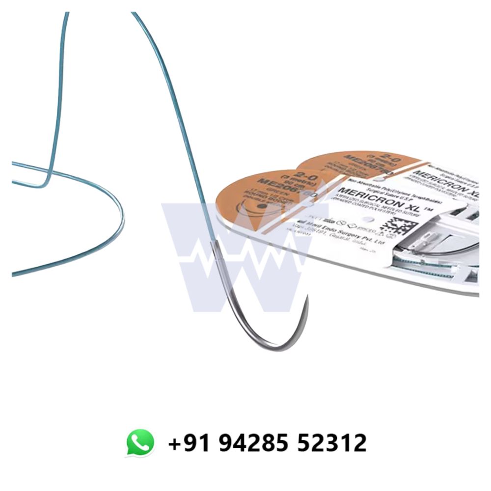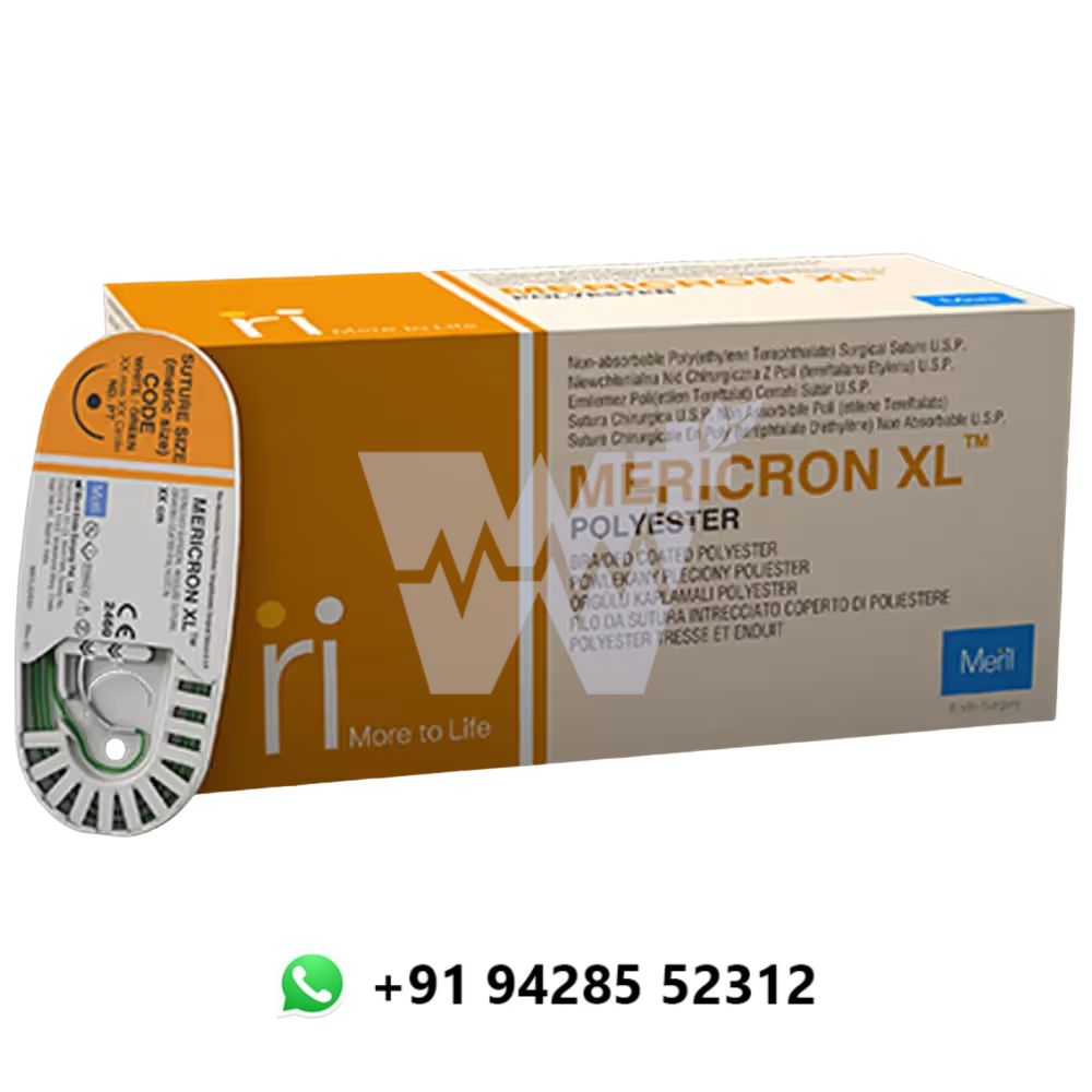 Meril Mericron is a non‑absorbable, braided synthetic suture composed of high-strength polyethylene terephthalate. Available in USP 2‑0 with a 17 mm taper-cut (or round‑body) needle and typically 90 cm length, the green‑dyed thread offers excellent visibility and handling. Its smooth braided structure ensures superior knot sliding and pliability while minimizing tissue trauma. With outstanding tensile strength and durability, Mericron is suitable for cardiovascular, neurological, ophthalmic, vascular, orthopedic, and general soft tissue closures.