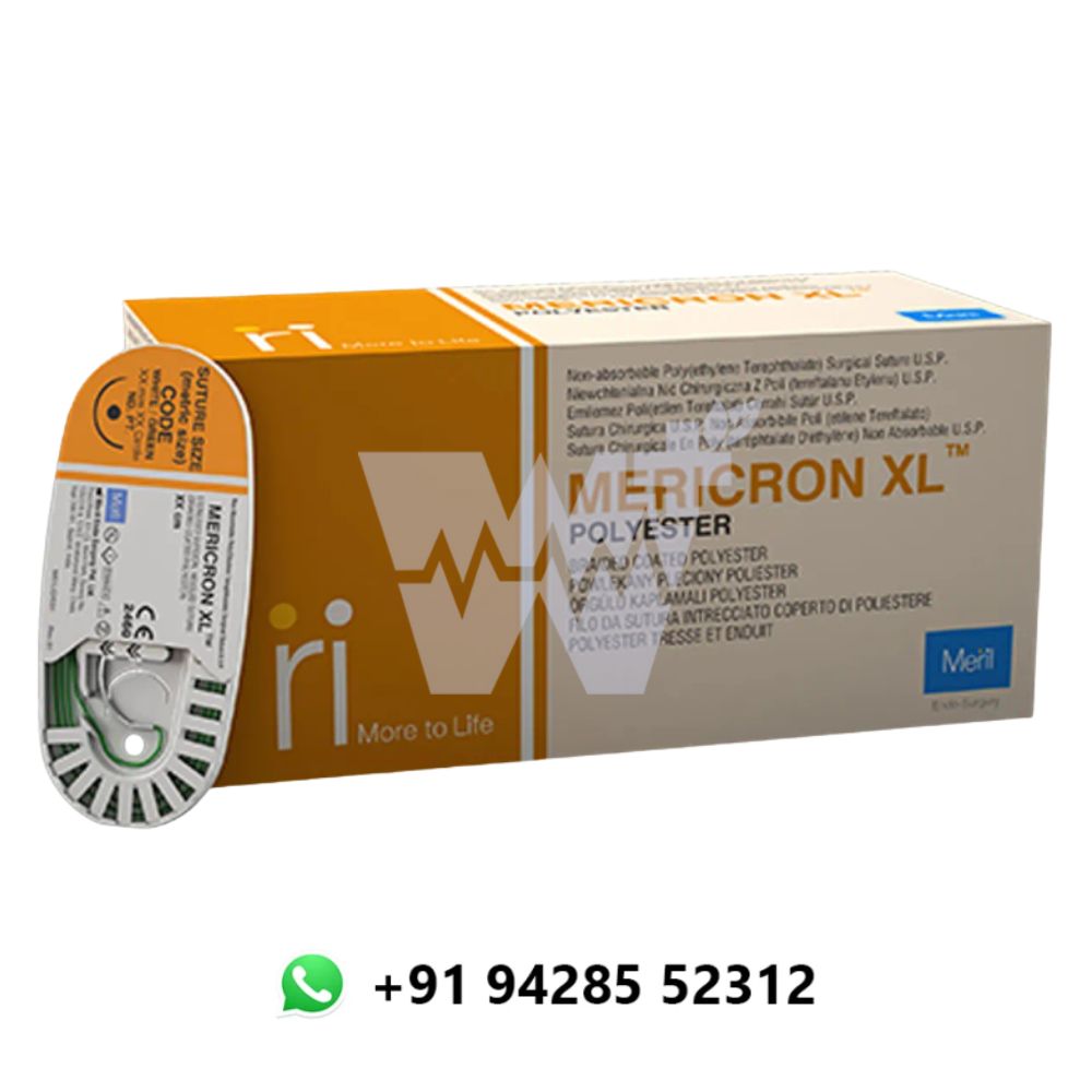 Meril Mericron Suture is a non-absorbable, braided multifilament surgical suture composed of polyethylene terephthalate (polyester), engineered for prolonged soft tissue support and superior mechanical performance. Its high tensile strength and structural stability make it ideal for cardiovascular, orthopedic, and general surgical applications. The braided configuration ensures excellent knot security and flexibility, while optional silicone or polybutilate coating minimizes tissue drag and enhances intraoperative handling.