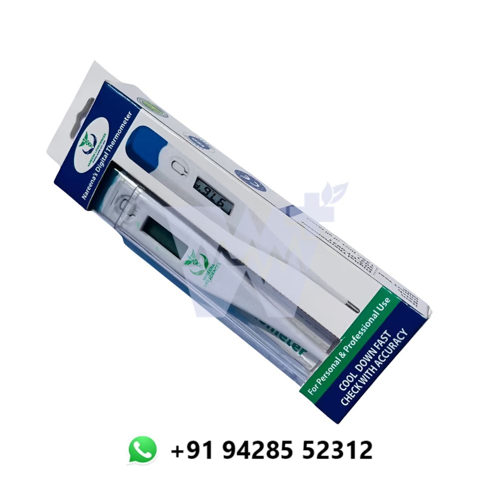 The Nareena Digital Thermometer is a precision medical device designed for accurate and efficient body temperature monitoring. Ideal for clinical, pediatric, and home use, it supports oral, rectal, and axillary measurements. The clear digital display provides fast readings in either Celsius or Fahrenheit, ensuring ease of use in diverse healthcare settings. Compact, lightweight, and easy to sanitize, it includes a hygienic protective case for safe storage and transport. Trusted for its consistency and reliability, the Nareena Thermometer is a valuable tool for everyday health monitoring and clinical assessment.