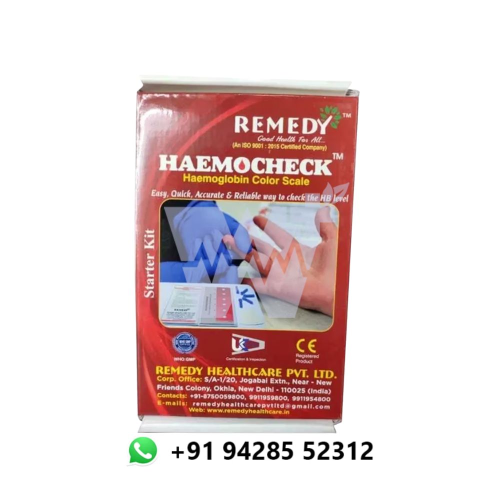The Remedy Haemocheck Hemoglobin Meter is a compact, clinically efficient device designed for fast and accurate hemoglobin testing at the point of care. Leveraging advanced photometric technology, it delivers precise results using a minimal blood sample, making it suitable for routine screening and anemia management. Its lightweight, user-friendly design ensures seamless operation across hospitals, clinics, and community healthcare settings.
