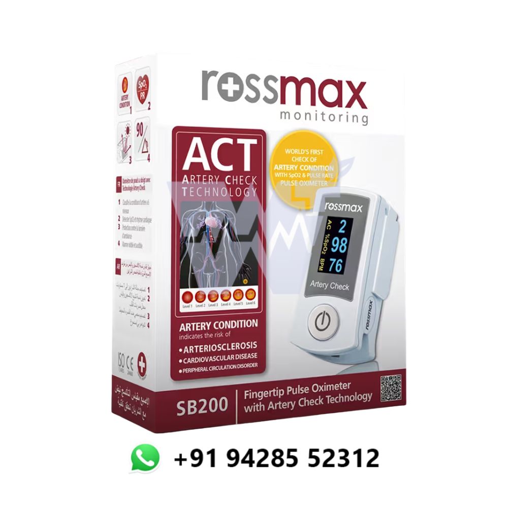 The Rossmax Fingertip Pulse Oximeter delivers fast and accurate measurements of blood oxygen saturation (SpO2) and pulse rate, providing essential insights for respiratory and cardiovascular health. Ideal for home use or clinical settings, it features a large, easy-to-read digital display for clear result interpretation. Its compact design makes it highly portable, allowing users to monitor their health on the go. The device also includes an automatic power-off feature to extend battery life, while the included carrying case ensures safe storage and easy transport.