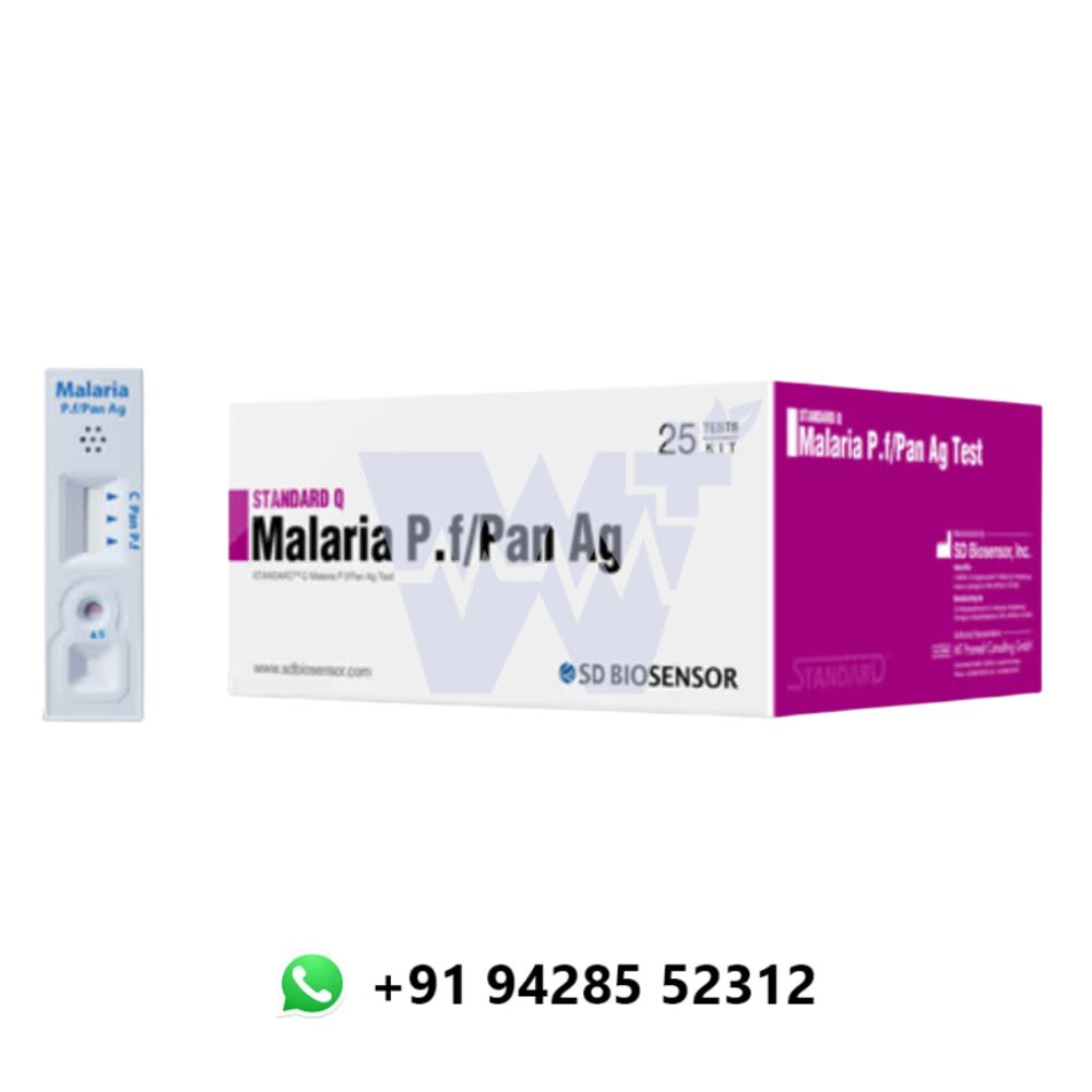 The SD Biosensor Ultra Malaria P.f/Pan Ag Rapid Card is a highly sensitive, immunochromatographic assay for the qualitative detection of Plasmodium falciparum (P.f) and pan-malarial (Pan) antigens in human whole blood. Designed for use in clinical, field, and low-resource settings, it facilitates early and accurate diagnosis of P. falciparum and other Plasmodium species. Each kit includes 25 individually sealed test devices, ideal for routine and large-scale malaria screening.