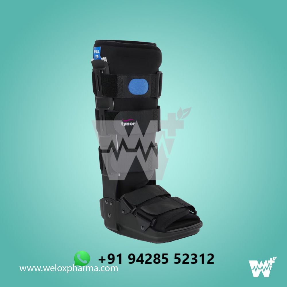 The Tynor Air-Short Walker Boot is designed for foot and ankle immobilization, offering enhanced support and protection during the healing process following fractures, sprains, or post-surgery recovery. Featuring an air-cushioned design, this boot provides customized compression and comfort by adjusting the air bladders for a personalized fit. The rigid structure ensures stability and prevents excessive movement, while the breathable material keeps the foot cool and comfortable. The boot is lightweight and easy to adjust, making it ideal for daily use, allowing individuals to continue with everyday activities while promoting faster recovery.