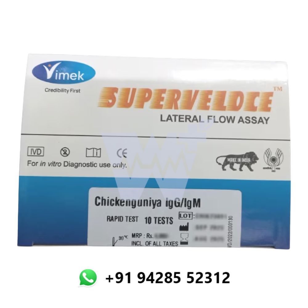 The Vimek Chikungunya IgG/IgM Rapid Card is a diagnostic tool designed for the simultaneous detection of Chikungunya-specific IgG and IgM antibodies in human serum, plasma, or whole blood. This rapid test provides fast and accurate results, aiding in the early detection of Chikungunya virus (CHIKV) infection and helping healthcare providers make informed decisions.